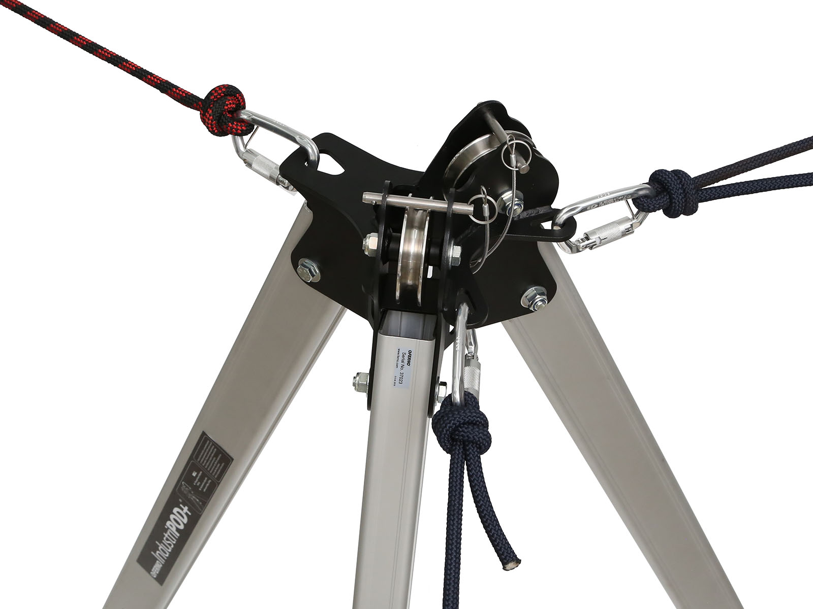 The IndustriPOD+’s one-piece fabricated steel head includes two integrated pulleys to allow two devices to be attached simultaneously. The head has three stabilisation anchoring points that assist in the stabilisation of the system when using the external mechanical advantage or retrieval systems.
