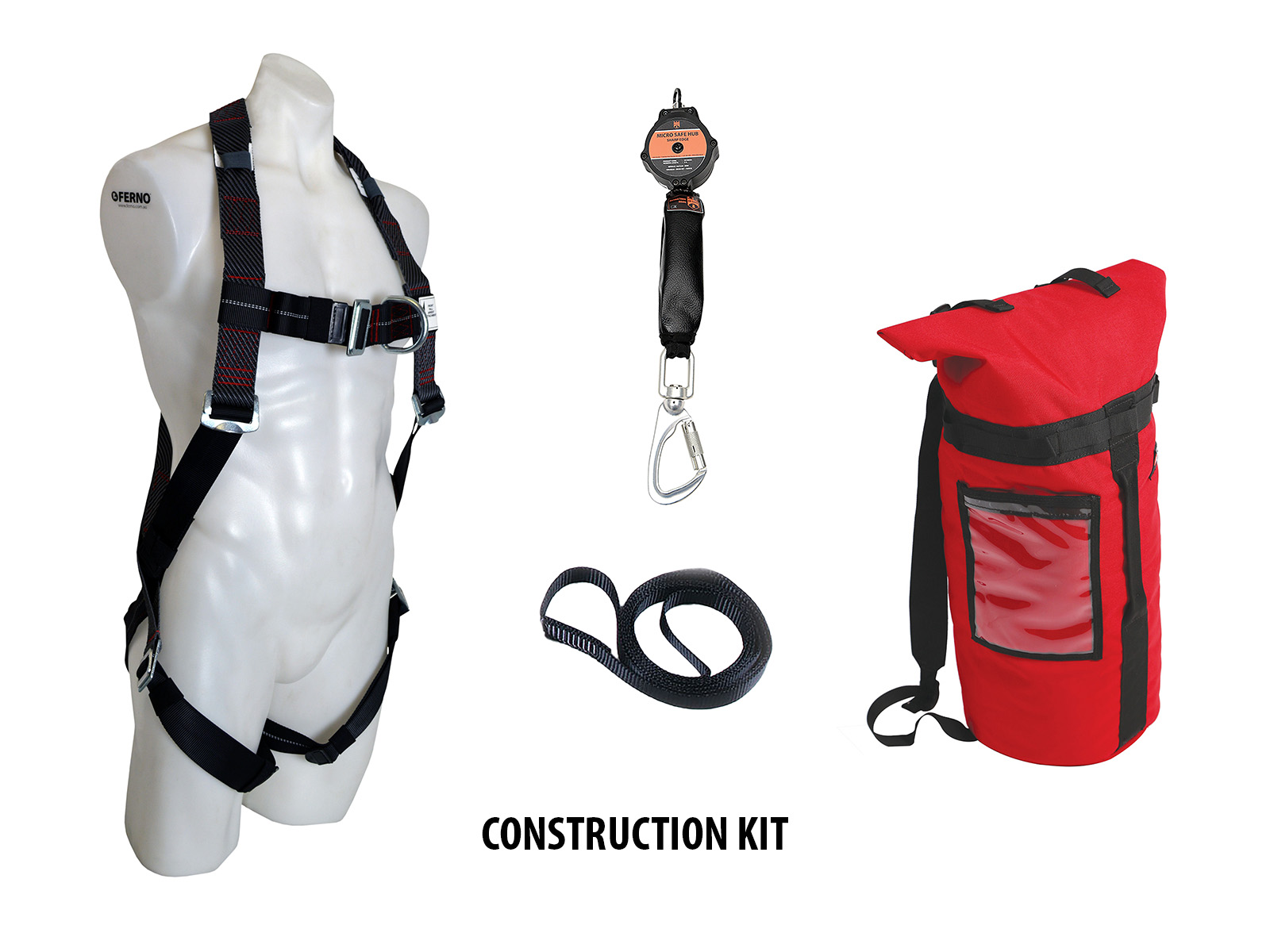 The Ferno Construction Kit is purpose-built for worksites where movement is limited and controlled—such as elevated work platforms (EWPs), general construction, and maintenance tasks that require dependable fall protection without the complexity of a full lifeline system.